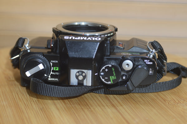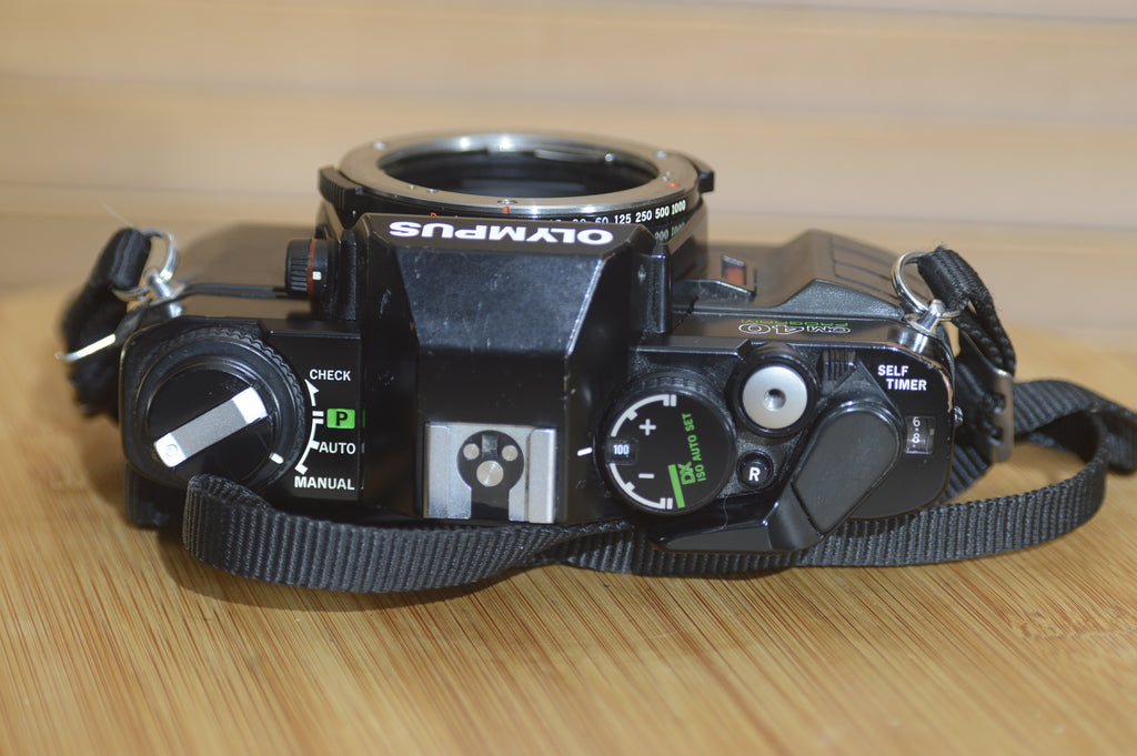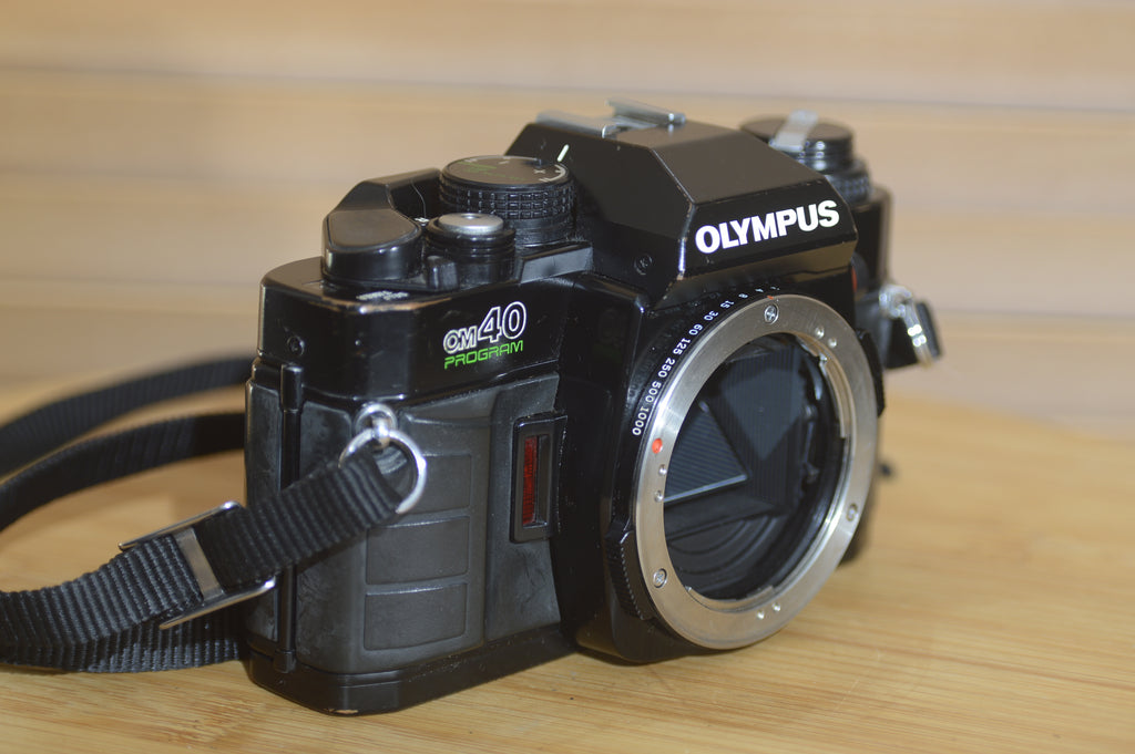 Black Olympus OM40 programme 35mm SLR (body only). Good condition. - Rewind Cameras