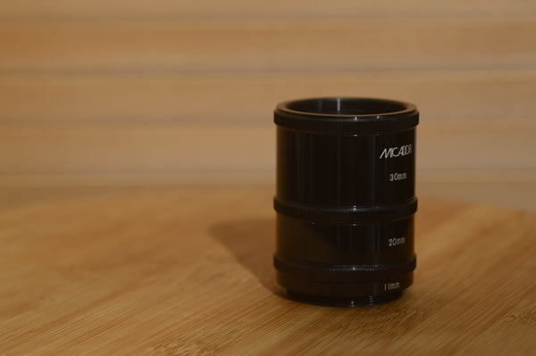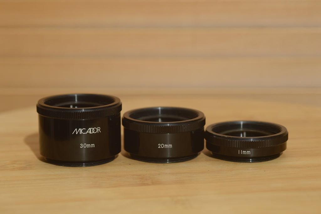 Super useful for extending the focal length of your lens. Tube sizes are 30mm, 20mm and 11mm. Fantastic condition and in box. These are perfect for experimenting with closeup photography. Get multiple uses out of your lenses with these extenders.