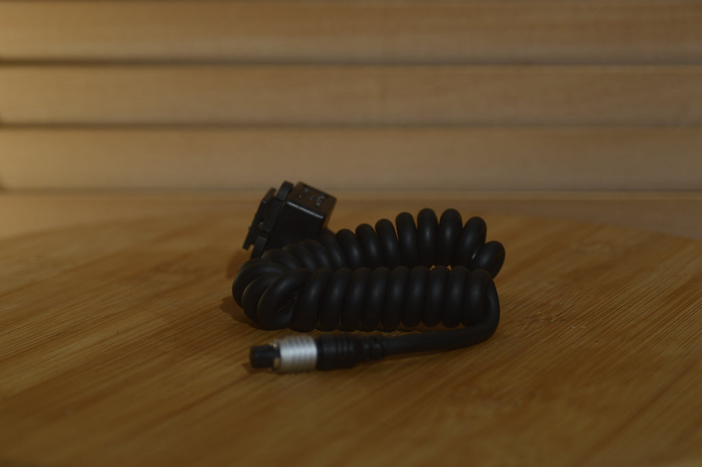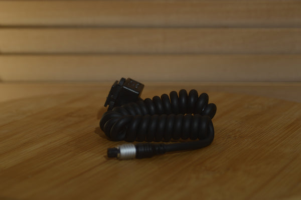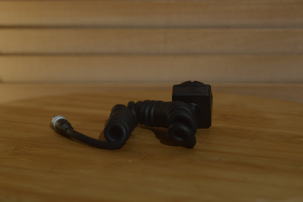 This TTL shoe cord is used for connecting an OLYMPUS OM camera to an OLYMPUS T series flash to take flash pictures with the flash unit off the camera.