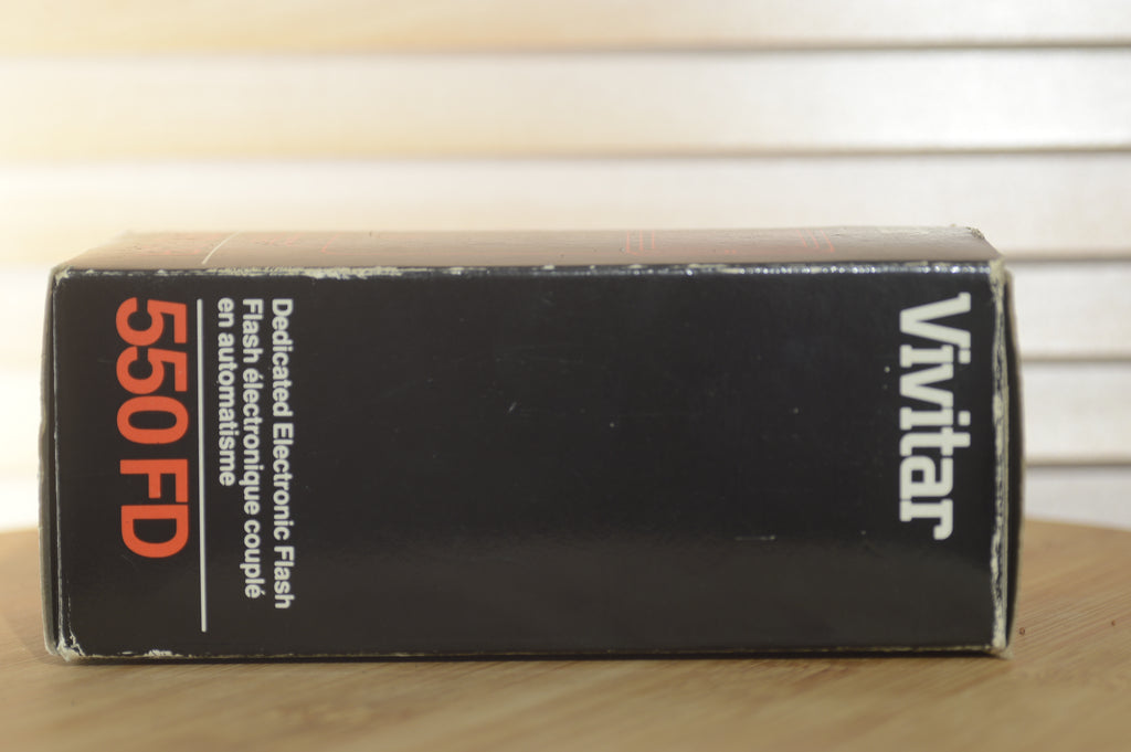 Boxed Vivitar 550FD C/R Auto Thyristor Flash. Dedicated for Canon and Ricoh SLRs.