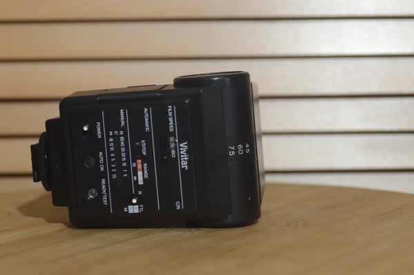 Fantastic and powerful flash in great condition. Great to use in dim light or as a fill in flash especially for portraiture. With added tilt it makes for a great deal of lighting control. These charge quick and the adjustable bounce head make the perfect lighting easily achievable. Although powerful these are still relatively compact so this will easily fit in your kit bag. As with all vintage stock there are some cosmetic marks but we try to show these in the images.