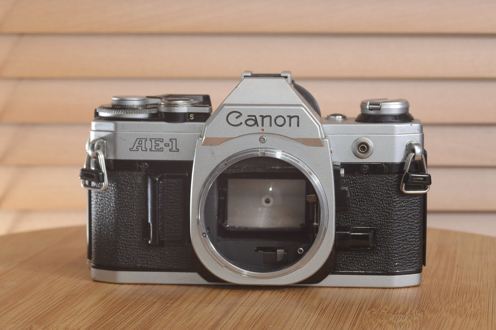 The Canon AE-1 is a 35mm single-lens reflex(SLR) film camera for use with interchangeable lenses. It was manufactured by Canon Camera K. K. (today Canon Incorporated) in Japan from April 1976 to 1984. It uses an electronically controlled, electromagnet horizontal cloth focal plane shutter, with a speed range of 2 to 1/1000 second plus Bulb and flash X-sync of 1/60th second. The camera body is 87 mm tall, 141 mm wide, and 48 mm deep; it weighs 590 g.(thanks to Wikipedia)