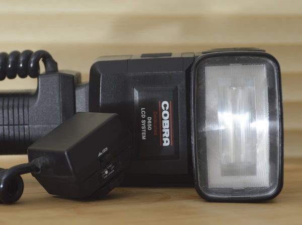Cobra 650 lcd system Flash gun Canon dedicated. This is a fantastic flash and super easy to use with the LCD readout.
