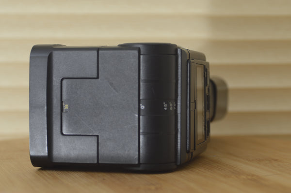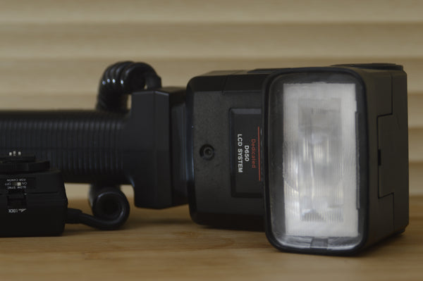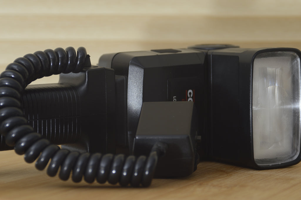A great flash gun for your vintage Canon camera very powerful and has the hand held grip for you to either hand hold or mount on a camera bracket. Great for wedding or parties when you need to be noticed as the photographer or for studio work. Size does matter sometimes ! This has the sensor attached that can sit on the camera for perfect exposure.