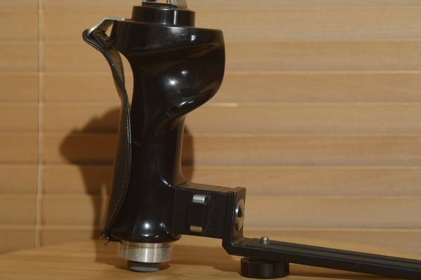 Fantastic flash grip In beautiful condition. 360 degree turn on the hot shoe, great for bounce flash techniques, especially if using a basic flash.. These are really useful on shoots to distance your flash and maintain a firm hold on the camera. Really comfortable