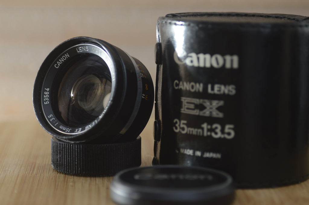 Gorgeous Canon 35mm f3.5 EX lens with case. A fantastic addition to any photographers kit.
