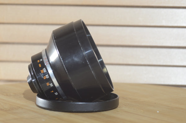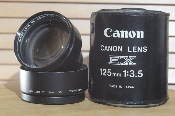 Gorgeous Canon EX 125mm f3.5 lens with case and lens hood. A fantastic addition to any photographers kit. A beautiful piece.