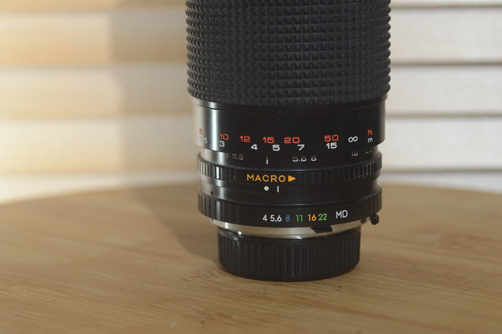 Gorgeous Sirius MC Auto Zoom 28-200mm f4-5.6 Minolta MD  lens.  Fantastic macro setting. - RewindCameras quality vintage cameras, fully tested and serviced