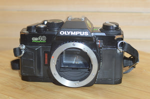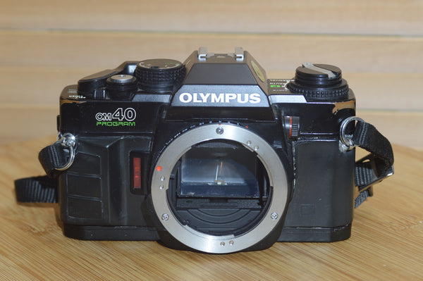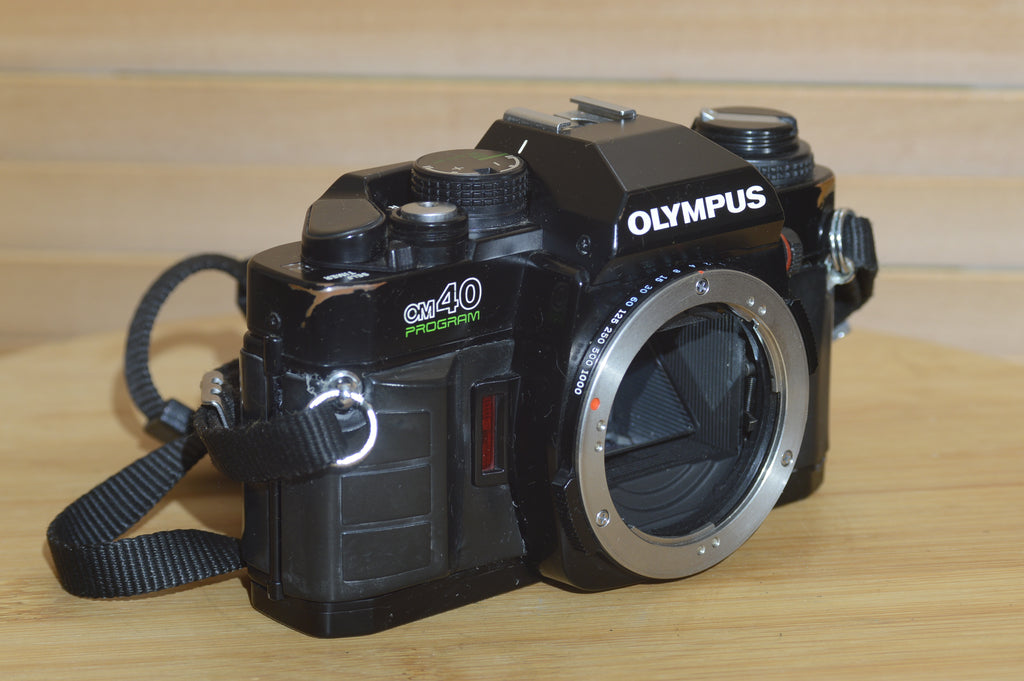 Vintage Black Olympus OM40 programme 35mm SLR (body only). Great condition.