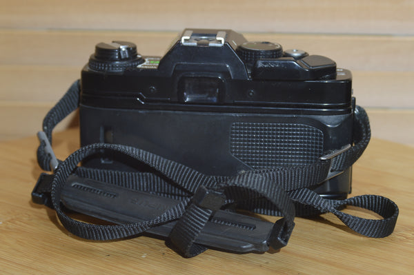 Great condition, with gorgeous brassing around the edged, giving it that extra character. Great starter camera, lovely mechanics and features. Perfect SLR to get you started into 35mm photography. Compatible with all vintage OM lenses. If you would like to chat with us about a starter pack, do let us know. Full of features and a great starter camera giving you access to the Zuiko lens system.